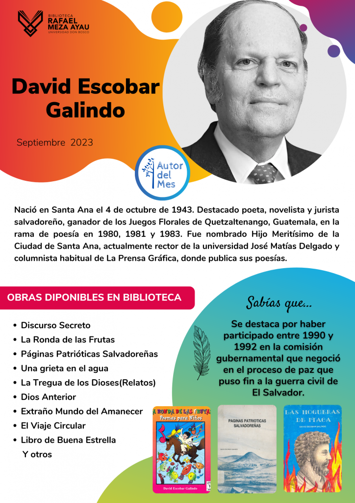 Autor del mes Septiembre: David Escobar Galindo Lista de títulos completa del autor del mes