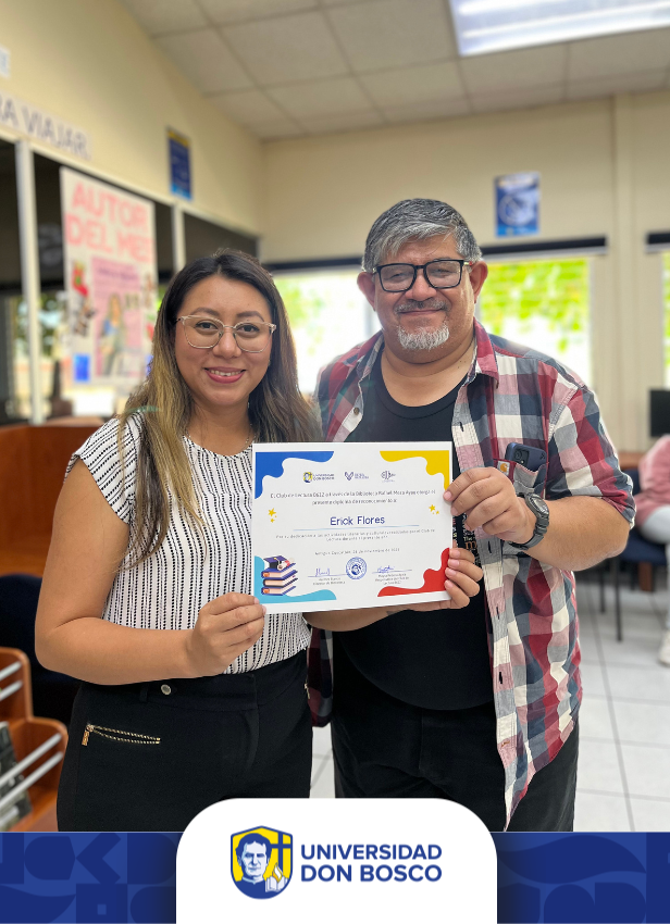 “Me alegró ser parte de la clausura del año del el club de lectura B612 porque hubieron varias dinámicas, varios premios, refrigerio y sobre todo, charla amena con los participantes, los cuales tienen mucho conocimiento sobre libros, ha sido muy gratificante aprender de ellos y estar en un espacio de mutuo aprendizaje».– Cristina Umaña, miembro del club de lectura campus Soyapango.
