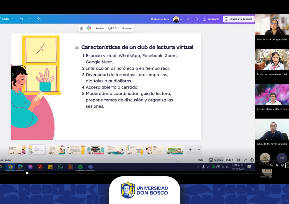 La biblioteca Rafael Meza Ayau durante el 2025 amplió las iniciativas de fomento de la lectura y estableció sesiones del club de lectura B612 que tuvieran alcance con la comunidad de estudiantes de la Dirección de Educación a Distancia de la UDB.